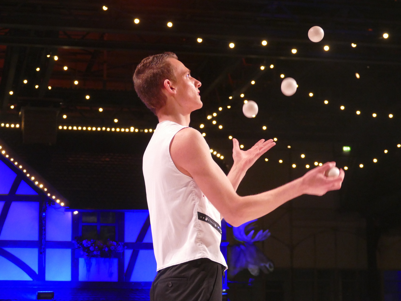 Tempo, Präzision und pure Energie: Dennis bringt seinen Würfel in rasender Geschwindigkeit zum Fliegen und lässt dem Publikum kaum Zeit zum Durchatmen. Seine Jonglage ist ein mitreißendes Spiel aus Dynamik und Kontrolle, bei dem ein Trick den nächsten jagt. Eine kraftvolle Performance, die garantiert für Adrenalin sorgt.